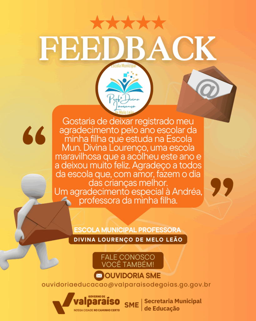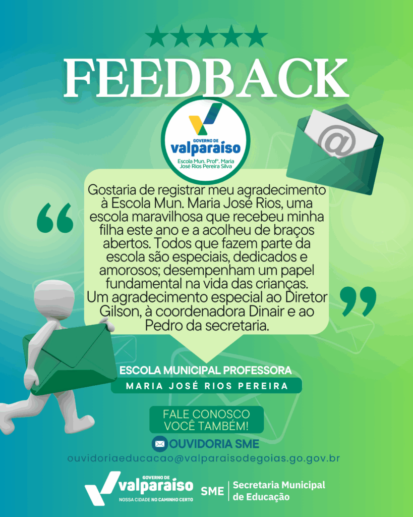 É um orgulho para a SME, como um todo, receber tão valiosos elogios, percebendo que a comunidade enxerga e autentica essa trajetória bonita que é construída na educação valparaisense.
