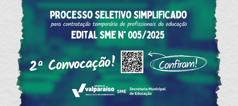 A SECRETARIA MUNICIPAL DE EDUCAÇÃO DE VALPARAÍSO DE GOIÁS, no uso de suas atribuições legais, e em conformidade com o Edital do Processo Seletivo Simplificado nº 005/2025,